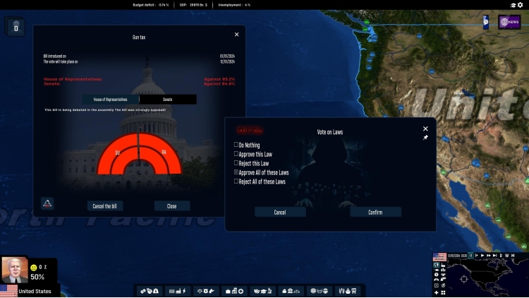 With the God'n'Spy add-on, you can be the master of Geo-Political Simulator 2026 Edition and intervene in world events by accessing all the key factors of the game, manipulating them as you see fit and creating or modifying events at any moment !
