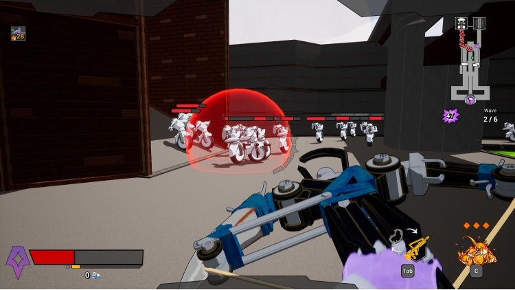 Act like it! It might be much for one man, but not for one robot. Don't worry about AI.VI: He comes from the good old days before planned obsolescence, when a little driver update didn’t hurt. This means there's no limit to how powerful AI.VI can get: push the limits, overclock your loadout, combining dozens of weapons and buildings with randomized upgrades to reach truly ridiculous heights of power!