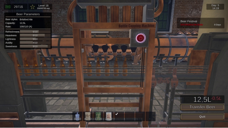 Discover recipes inspired by real-world beer traditions, from light lagers and IPAs to rich stouts and experimental hybrids. Choose from diverse ingredients, balance flavors, and aim for the perfect taste - or produce on a massive industrial scale!