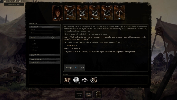 Take commissions from warriors, nobles, and mercenaries. Meet their specific needs and expectations by balancing your sword’s damage and parry ratings based on real-world physics. Learn how to curve blades and carve engravings, acquire rare materials, and expand your arsenal of sword parts. Keep up with demand by hiring unique characters to your forge, each with their own ambitions and stories.
