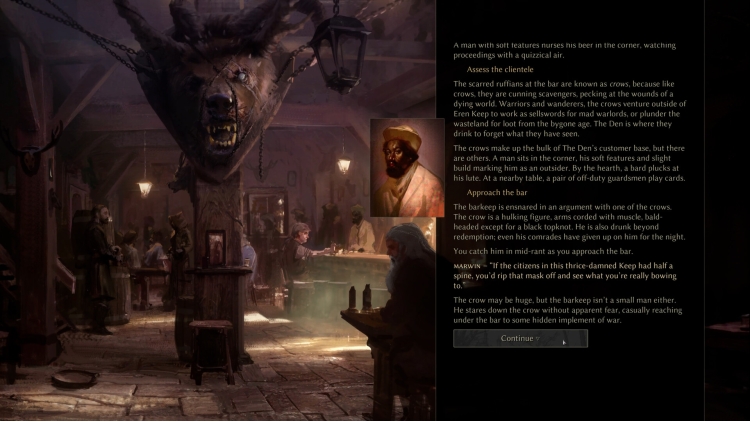 Visit beautifully illustrated locations around Eren Keep, from the bustling Citadel Square to the local tavern The Den, to find opportunity, alliances, or merely a moment of respite. As you craft blades for Eren Keep’s various factions – like the scavenging Crows or the scholars of the Magisterium – will you be drawn into their visions for reclaiming the fallen world? Or will your growing influence risk attracting the Masked King’s silent gaze?