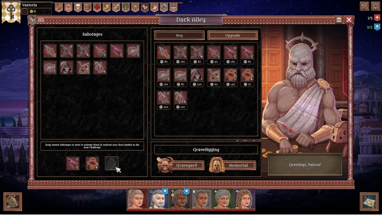 Between battles, use your hard-earned gold to build and upgrade city buildings, unlocking new tools and services to aid you in your quest for vengeance. From the infirmary, where your gladiators can recover, to the bustling market for trading items, and even a grand monument to honor fallen gladiators.