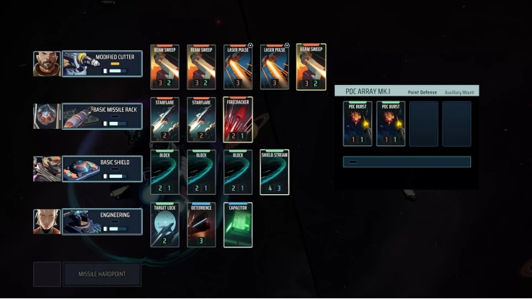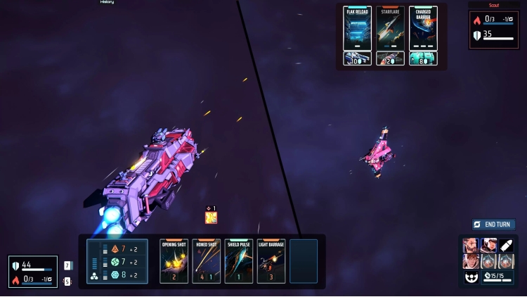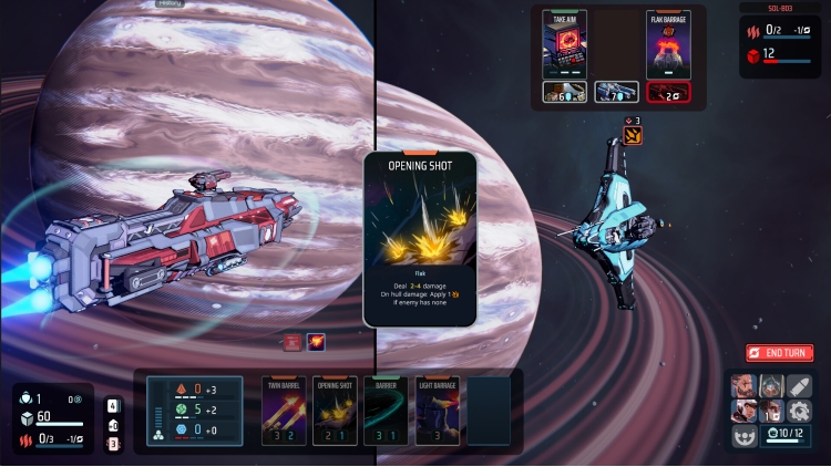 Your sensors will pick up on enemy activity, letting you know what to expect when they strike. Calculate cooldown times and strategize around enemy equipment that poses the greatest threat to you in upcoming turns. Will you prioritize disabling specific equipment with focused fire, or will you instead rely on using defensive countermeasures to stand your ground as you burn past enemy shields and punch through their hulls? Not all equipment is created equal, and your options are determined by the unique capabilities of your loadout, and the resulting cards at hand.