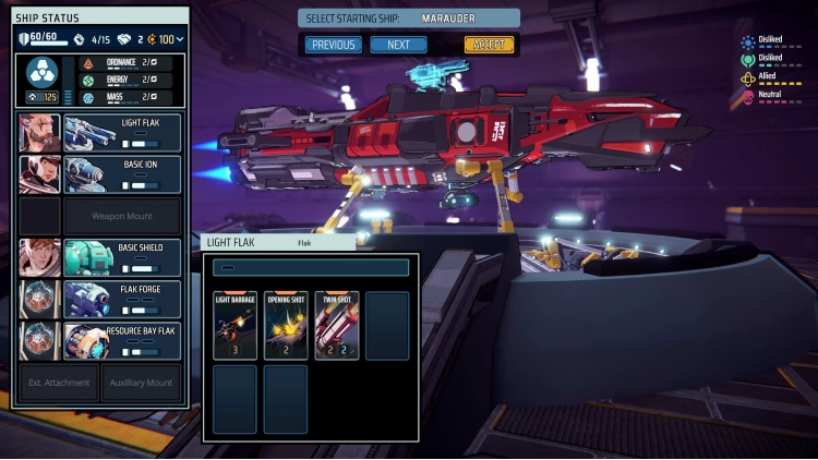 Choose from a multitude of ship chassis and then kit your selection out with a variety of weapon systems, defensive upgrades, and internal modules. Find unique synergies between your options as each choice comes with an associated set of cards for your deck, with additional cards and upgrades unlocked at your discretion after each victorious encounter – will you dodge dangerous regions, or face them head-on in the hopes of acquiring powerful new options for the journey ahead?.