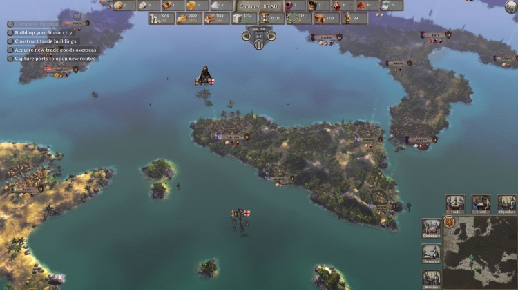 Trade is the key to the city's survival. Establish new trading outposts across the known world to gain access to twelve precious commodities, from wool and linen to spices and silk. With every trade route the opportunities expand, bringing with it more wealth and prominence. Each route also makes the city a more attractive target for rival powers, demanding a strategic approach and navigating the treacherous world of politics and warfare of medieval times.