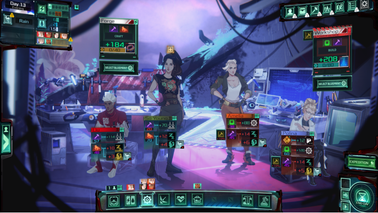 Survival is more than just staying alive, it’s about managing every aspect of your crew and technology. Food, water, exhaustion, mental health, every system is deeply interconnected. Your ship may be in ruins, but its wreckage holds vital resources to help you build a functioning camp.