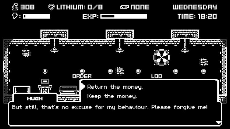 To escape, you need to earn £3000 from digging precious lithium. To survive, you need to manage your time, energy and money during the rigid day-and-night cycle.