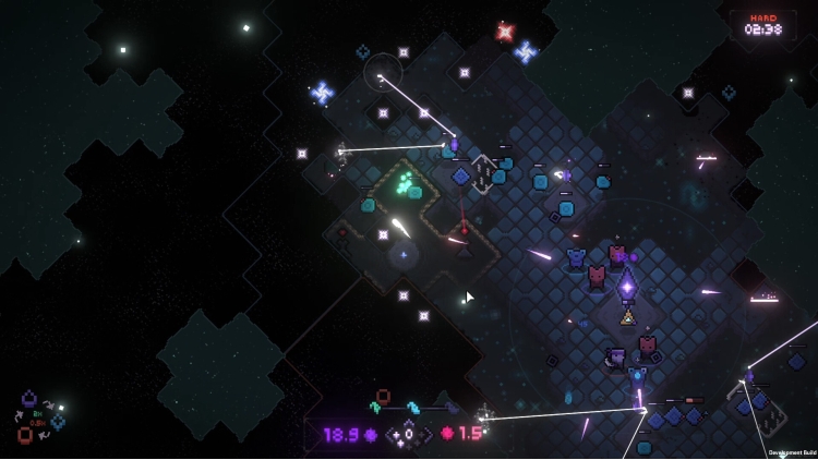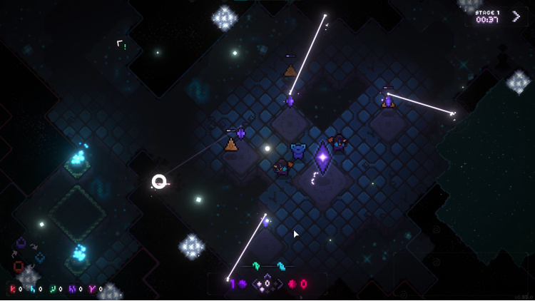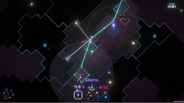 Every run starts with your crystal and a supply of energy. Then it's up to you how to fight the darkness. Do you steadily expand, clearing the darkness, harvesting its energy, and carefully deploying defenders to deal with whatever emerges from the dark? Or do you play it fast and loose, striking out to locate ancient structures and powerful artifacts hidden within?