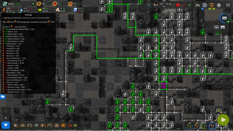 Use a turn to select a terraforming kit and shape the landscape to your colony’s advantage. Need a water source? Place a water drop tile into a canyon and watch the surrounding flat land become fertile. Not enough resources? Create new mineral deposits or simply expand pre-existing ones.