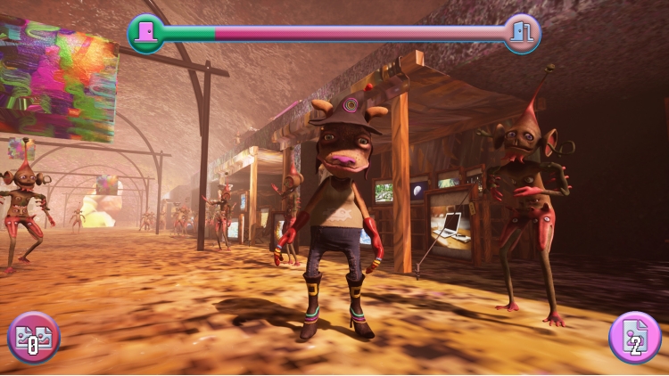 Play as a rat dog witch who escapes her job through a hidden vault and enters the Fuzz Dungeon - a space in between thought and reality, where ideas ruminate in limbo before turning into real life consequences. By entering different buildings throughout the dungeon you take on many different forms from 8-bit style to hand drawn to a 3d satellite bird that shoots down floating space heads. Travel through an absurdist version of human history as you try and find a sasquatch sex amulet that will, for some reason, enable you to visit the suburbs of the Fuzz Dungeon where you can defeat a sasquatch statue and abolish bad ideas forever.