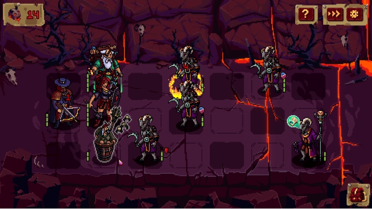 - Hero Rearrangement — three heroes on the front line attack while the fourth in the back recovers health.