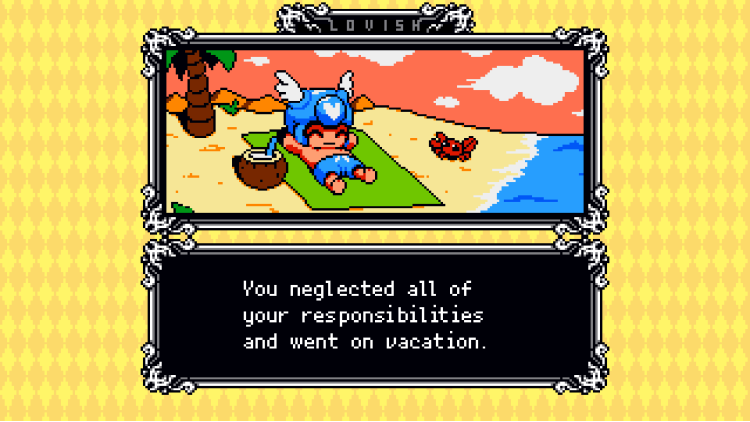 LABS and Matt Kap present Lovish, an outrageous 8-bit-styled action-adventure game! Venture through a series of bite-sized rooms, slicing up monsters, collecting items and getting to the exit! After exiting each room, enjoy a short event scene, in which anything could happen! Will you find an item? A random encounter RPG fight? Will the world get destroyed? Find out by conquering each room of the Devil Lord's castle, one challenge at a time!