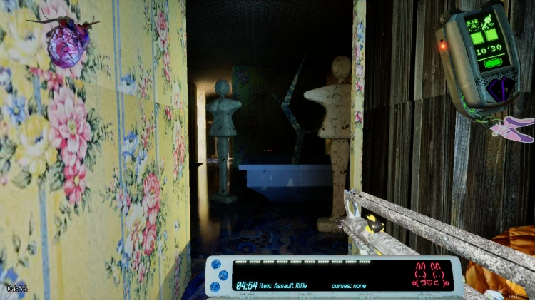 Learn the mysteries of the ethereal and investigate your surroundings with your handy flip-phone. Through it, you can analyze cursed objects that provide beneficial or bothersome powers. When back inside the safety of the house, check the computer room where you can find information on the life forms, curses, and items you have encountered.