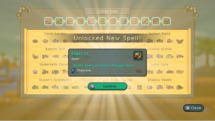 Explore the enchanting lands of Azerim above land and beneath the waves. Adventure through Honeywood forest to the Azerim coast where you'll encounter new quests, people to save and new fish to catch. Navigate the pull of the underwater currents to move your hook into hard to reach caves and upgrade your fishing line to delve deeper into the abyss.