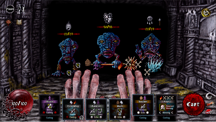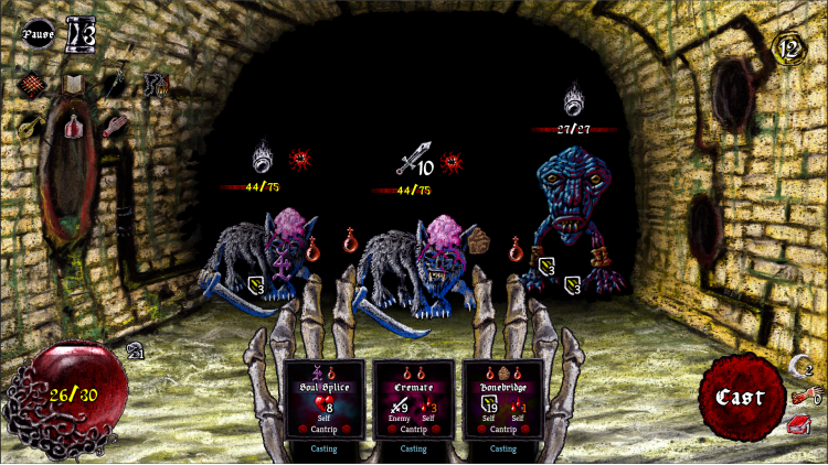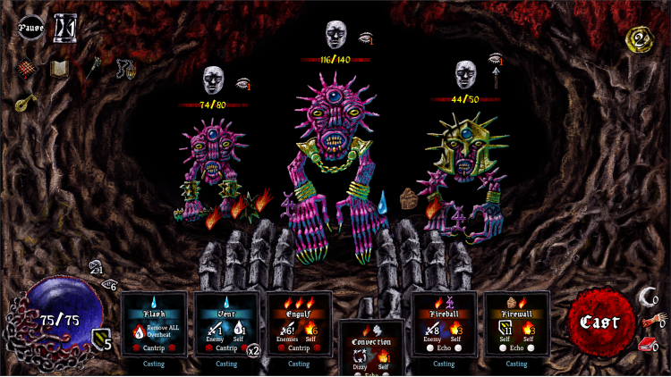 You’re a wizard. A not-so-heroic wizard imprisoned for wizard crime, awoken from your wizard slumber by an invitation from your niece. Escape from jail and traverse a hostile world crawling with danger. Every turn is a frenzy of spell sigils, cracking bones, and desperate gestures as you shred through monstrosities with raw elemental power.