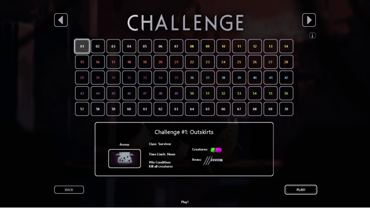 - Challenge Mode - Put your survivability to the test in multiple pre-constructed arena scenarios, adapting to each room as the difficulty increases