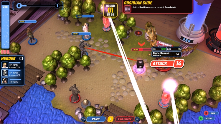 There’s more to time travel than hopping in a DeLorean, phone booth, or retro police box. In Reptilian Rising you’ll use time energy on time-twisting abilities to throw the Reptilians for a loop. Create clones of your troops, call in reinforcements (we’ve got Scarface on speed-dial), or create time-gates to rush your heroes across the map double time.