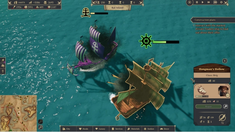 Create a resource-based economy – Utilise 100+ unique buildings to provide the resources and infrastructure required to grow your burgeoning republic. Develop the skills of your pirate citizens by supplying them with luxury goods, and upgrade to new tiers of industry with increasingly more complex production chains.