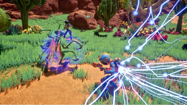 Four large, vibrant worlds to explore, each with their own weird and wonderful plants and creatures. Scan everything, catalog everything, and complete experiments to increase your science level… which unlocks exciting new gear! Plus… there may be more than four planets. Maybe.