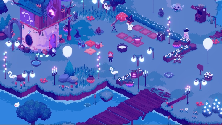 After falling through one of these mysterious portals yourself, you encounter the local witch Sage, who decides you’re the best person to help her in her quest. Taken under her wing as an apprentice, you’ll be able to help search for her missing Familiar, Flufferstoop.