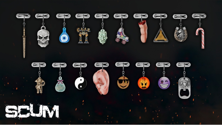 Introducing the SCUM Charms pack! This cosmetic DLC will let you make your weapon your own. Slap a charm on for good luck, or as a stress reliever during those short breaks in the middle of the firefight. Whatever your style, there will be a charm for you.