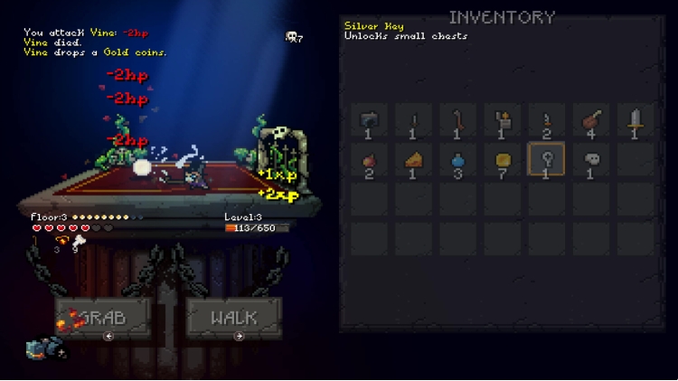 No twitchy reflexes needed, this game can be played at your own pace. Make the right choice, use your inventory to gain the upper hand in any room, and move deeper into the dungeon!