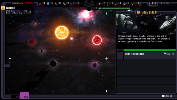 The dangers and opportunities of the Delta Quadrant beckon to be discovered by you and your crew. Scan celestial bodies to locate precious resources that fuel your journey. Find points of interest and oddities along your way, but beware: While the Delta Quadrant may reward the bold, it punishes the careless just as quickly. As captain, you have the final say in plotting a course and defining an approach.