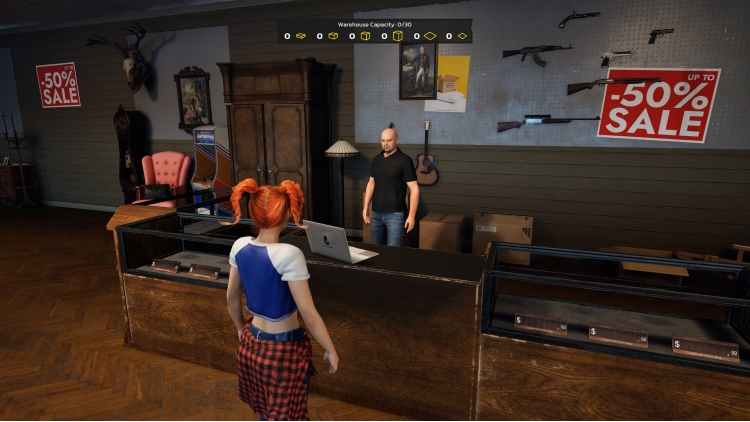 Use your available cash and run a hands-on business with your own pawnshop. Sell your valuables and roll up to the next auction in style. An item doesn't sell? Use marketing to boost your item's exposure to make a buck quicker! Build your business from the ground up, expand it, and build a network of pawnshops. Handle shelf placement, NPC customers, haggling, upgrading employees, capacities, and specializing in item categories. But keep track of loans and daily costs and financials to avoid going broke. That's the loser's path! And losers don't get the buy their own property.