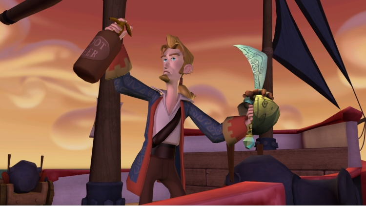 The saga begins with a heated battle involving the brave but often bumbling Mighty Pirate™ Guybrush, his beloved wife Elaine, and their nemesis, the demon pirate LeChuck. When the showdown goes up in flames, Guybrush finds himself marooned on a strange island with winds that always blow inward. How will our hero manage to escape this meteorological anomaly? What has become of LeChuck and Elaine? And what's the story with the infectious voodoo pox that's spreading across the Caribbean, causing Guybrush and other pirates to act like unruly hooligans? These are just some of the many questions posed in this first chapter of one of the most rollicking and rip-roaring entertainment experiences this summer.