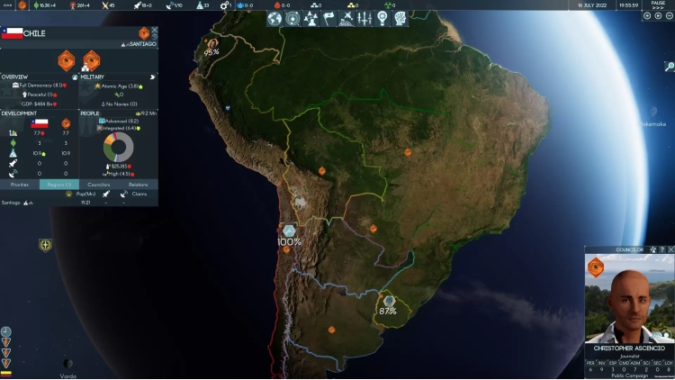 - Geopolitics is your sandbox – unite or break apart nations as best serves your ends, while using those under your influence to conduct proxy wars against the other six factions. Earth’s regions are modeled in detail, from educational levels and unrest to GDP and inequality. Gaining command over regions with great monetary wealth and military power can allow you to implement your will on Earth, but the war for the Solar System will not be won without also securing regions containing space launch facilities.