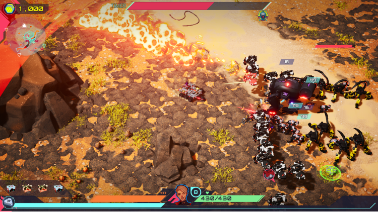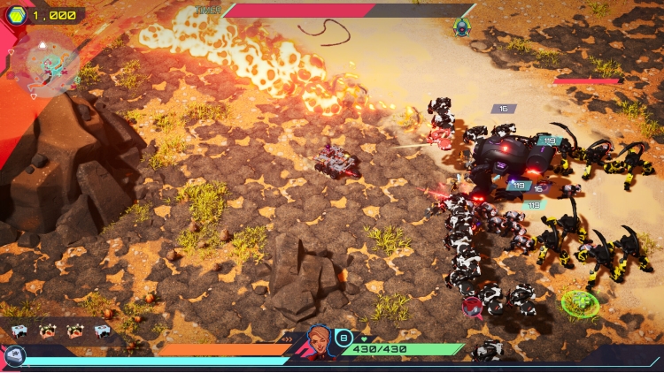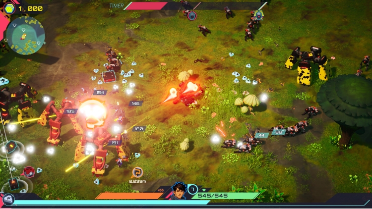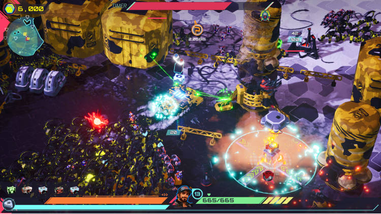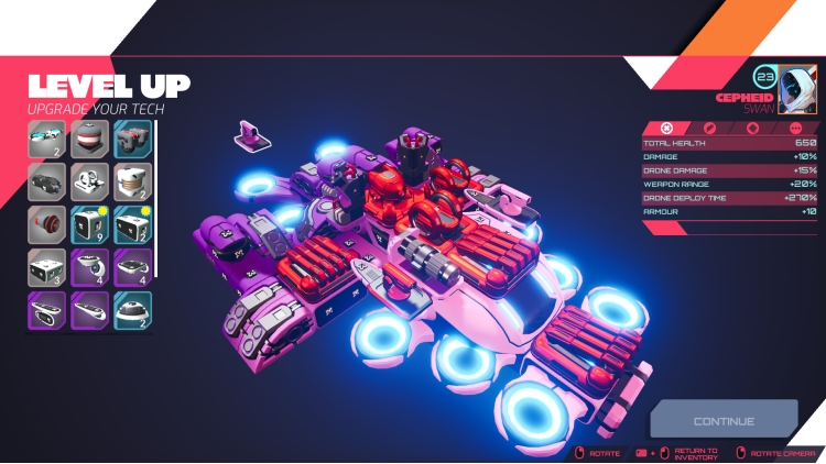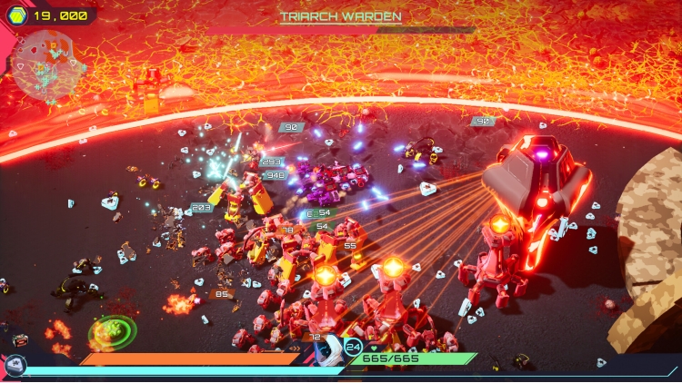 Four distinct planets, each crawling with bots, outposts and factories, all building to a brutal planetary boss. Upgrade your skills between missions to up your game and bring the fury on each new run.