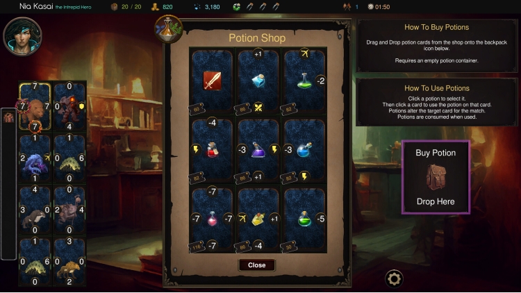 Traverse three distinct maps, facing increasingly challenging enemies. As you progress, collect shards to unlock permanent perks and new heroes, each offering unique abilities and playstyles. Enhance your deck by upgrading cards, discovering powerful relics, and utilizing potions for temporary boosts. Every decision matters in your quest to build the ultimate deck.