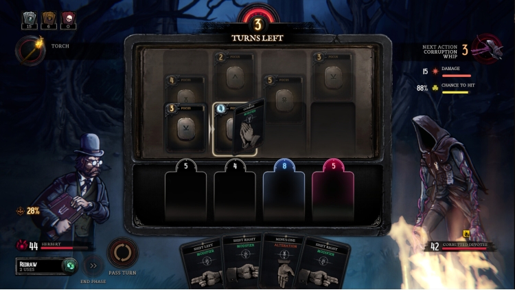 The stylish art will set the mood to a gothic horror adventure where Herbert tries to survive by using his skills, items and deck.