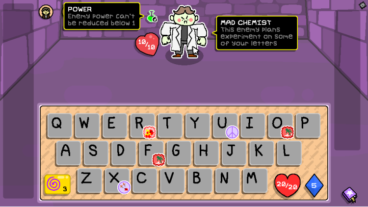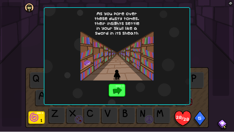 Enter a floor and your letters hum with Magicks. Create tactical combinations by mixing Magicks that should probably never interact. They obey peculiar rules, and mastering them is half the fun. One might strike harder if placed at the end of a word, another might heal you, and a third might hurt you simply for using too many vowels. The most cursed can become your greatest weapon… if you’re clever or desperate enough.