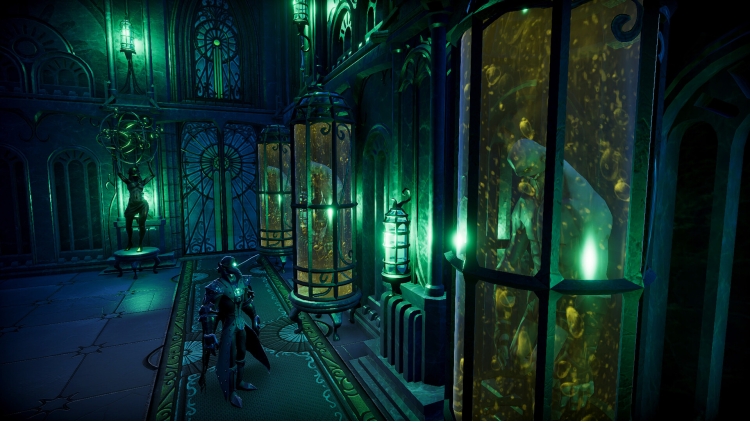 Light your breathtaking modern halls with the glow of bubbling lanterns filled with bio-luminous concoctions. Fill your halls with beautiful bronze, cured wood, and gleaming glass lined with the remnants of prized experimental monstrosities. Observe it all from the seat of your throne, towering and resplendent in stained glass decor.